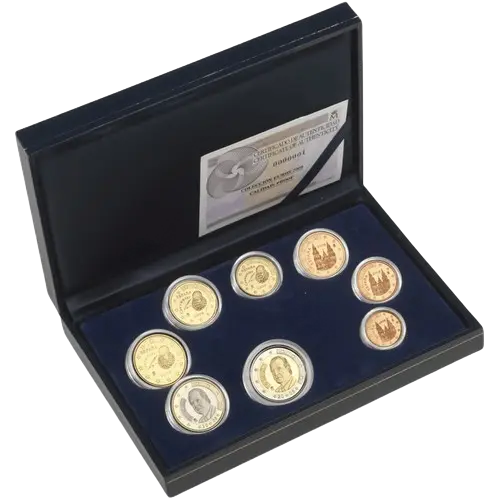 A diferencia de la versión BU, donde no hubo set nacional, sí hubo una emisión Proof unificada y oficial en 2008. Este estuche de lujo es una pieza fundamental porque cubre el año 2008 con la máxima calidad de acuñación posible, limitada a solo 5.000 unidades, lo que garantiza su exclusividad y potencial de revalorización.